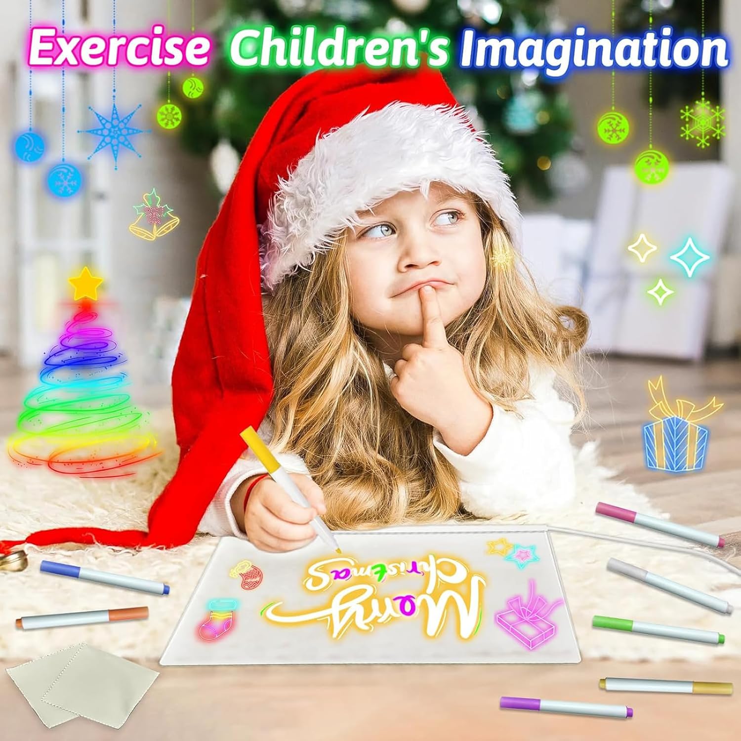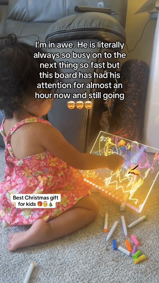 Simply draw on the clear acrylic board using the included neon markers, switch on the LED base, and watch your artwork glow in vibrant colors. When you’re ready for a new masterpiece, just wipe it clean with a cloth and start again. Recharge easily with the USB cable, and enjoy endless glowing creativity — no batteries, no waste, no mess