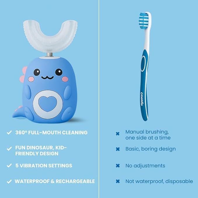 💡 Kid-Friendly Design. Soft, bite-safe silicone and gentle motion make brushing comfortable and safe for even the smallest mouths.