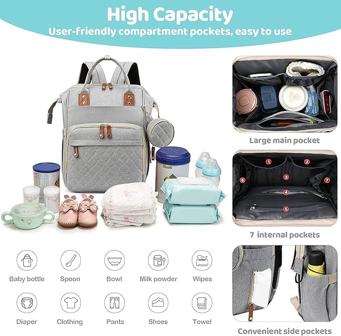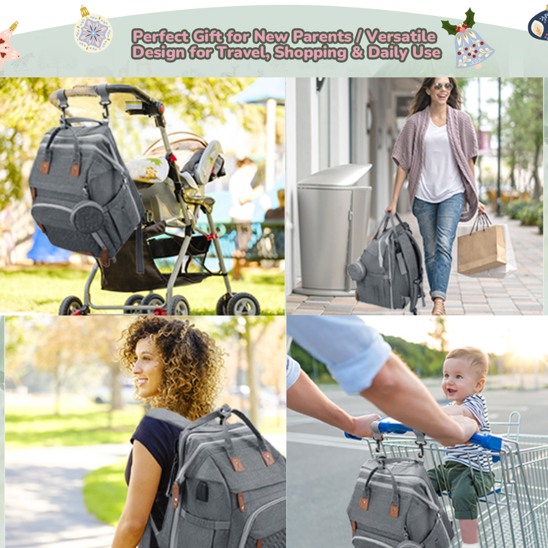 Crafted from premium waterproof fabric, with insulated bottle pockets, USB charging, and stroller straps, it’s built to handle life, beautifully.